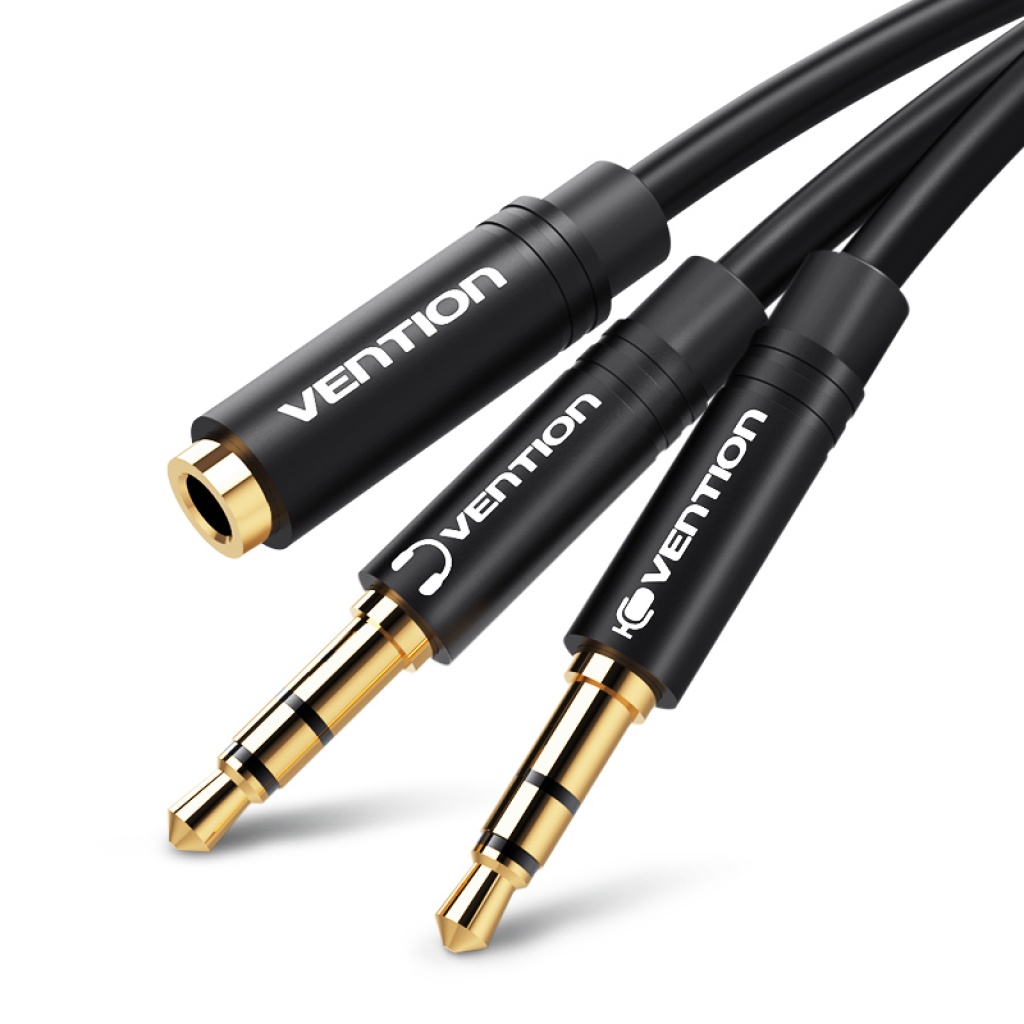 Cable de Audio 2x3.5 mm a 3.5mm Macho/Hembra 0.3M / Negro BBUBY Vention